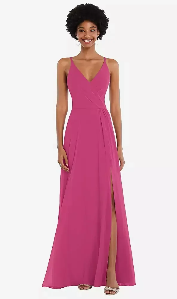 Stunning V-neck A-line with Slit, Open back, Spaghetti strap