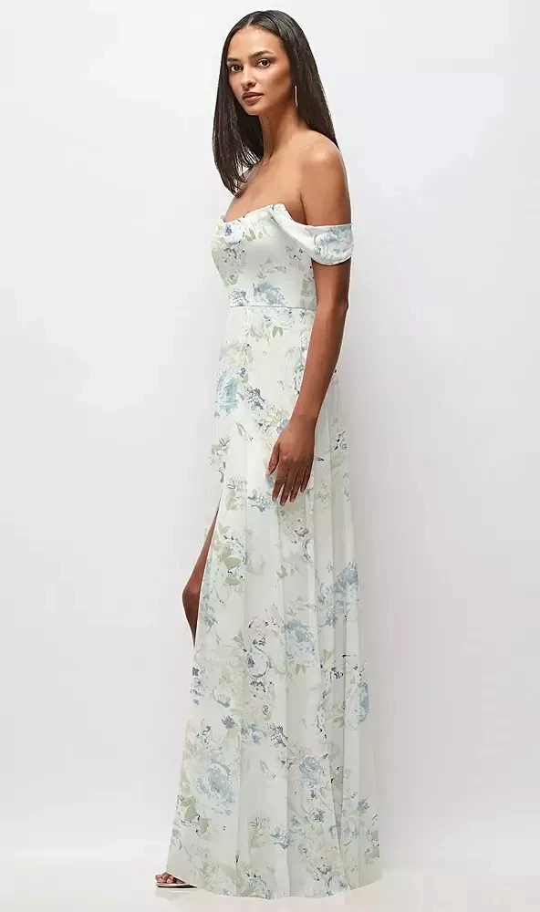 After Six 1560 Off-the-Shoulder Basque Neck Maxi Dress with Flounce Sleeves #2 vertical thumbnail