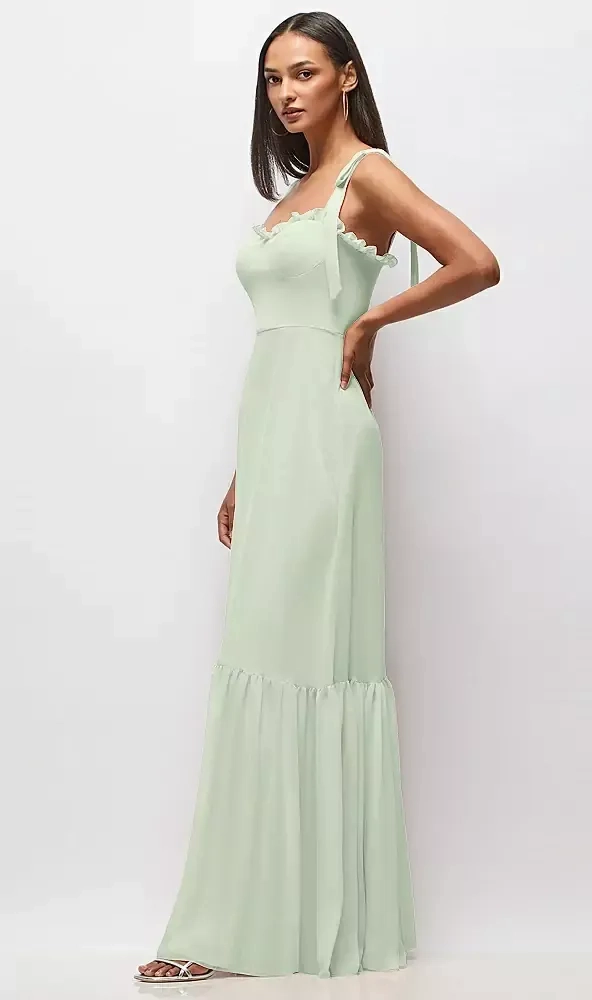 Tie-Shoulder Bustier Bodice Ruffle-Hem Maxi Dress
