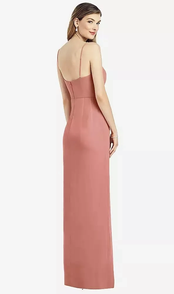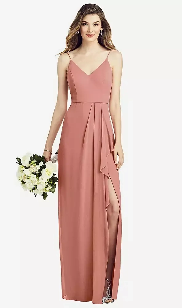 Spaghetti Strap Draped Skirt Gown with Front Slit