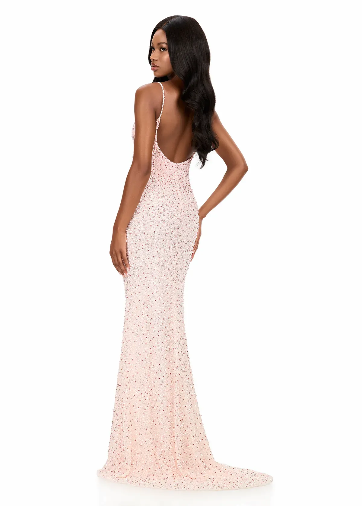 Sparkling Beaded Fitted Gown V-Neck Low Back Floor-Length