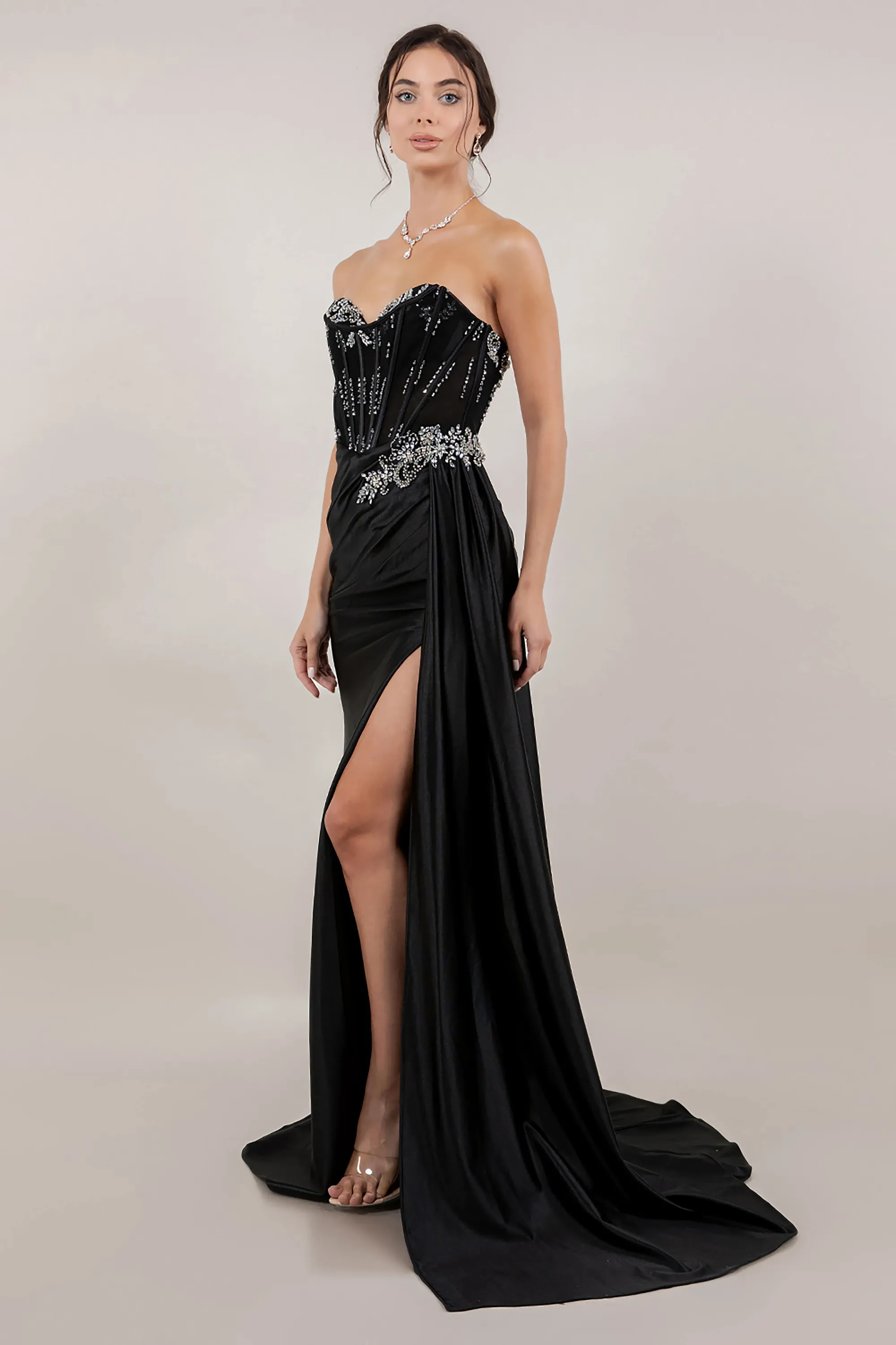 Rhinestone Shiny Satin Drape