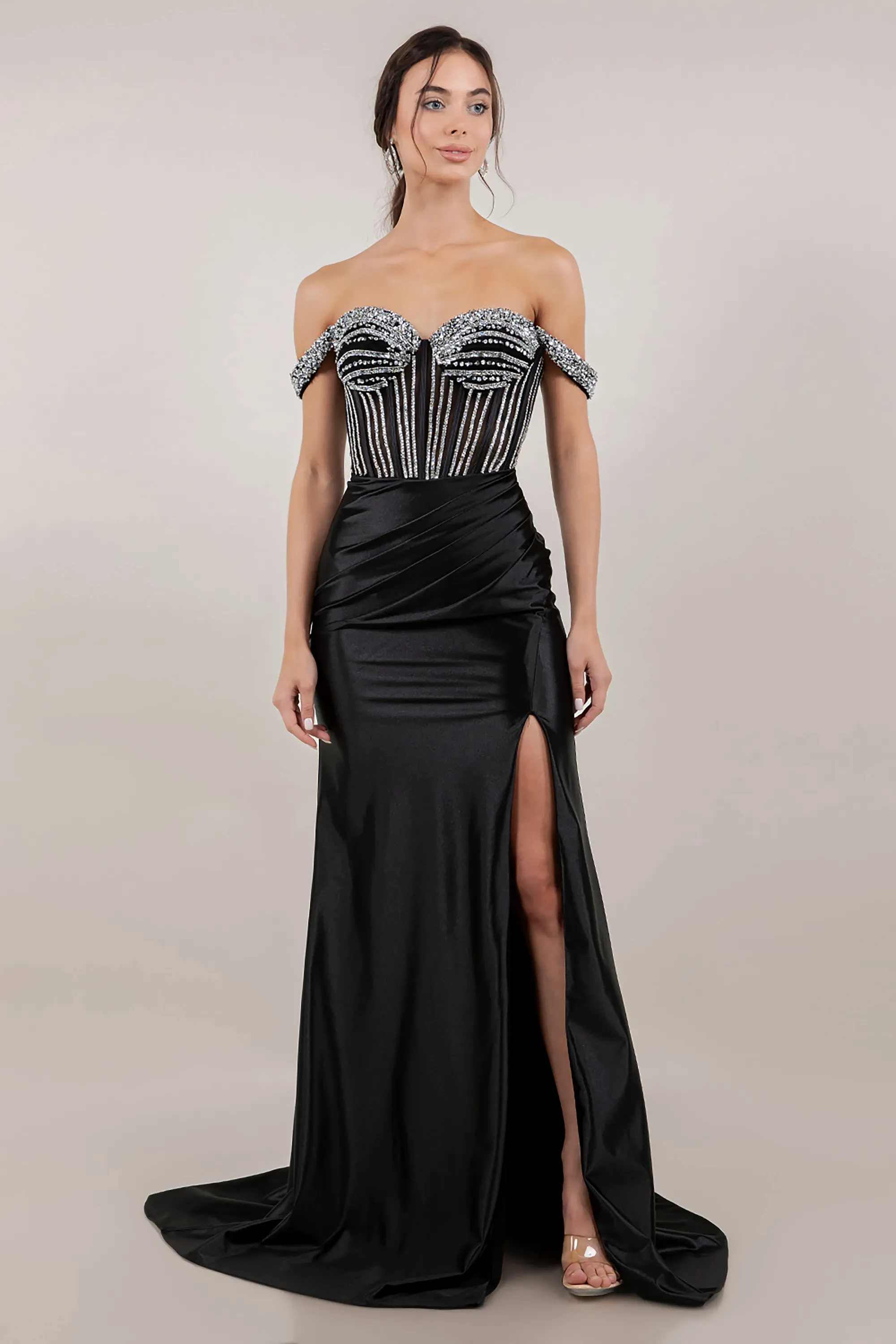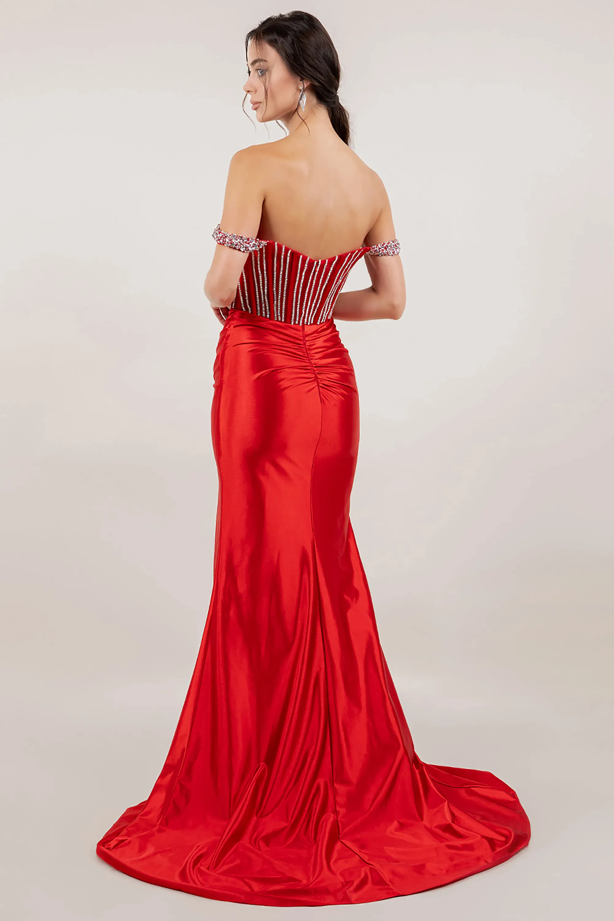 Rhinestone Off Shoulder Sleeve Satin