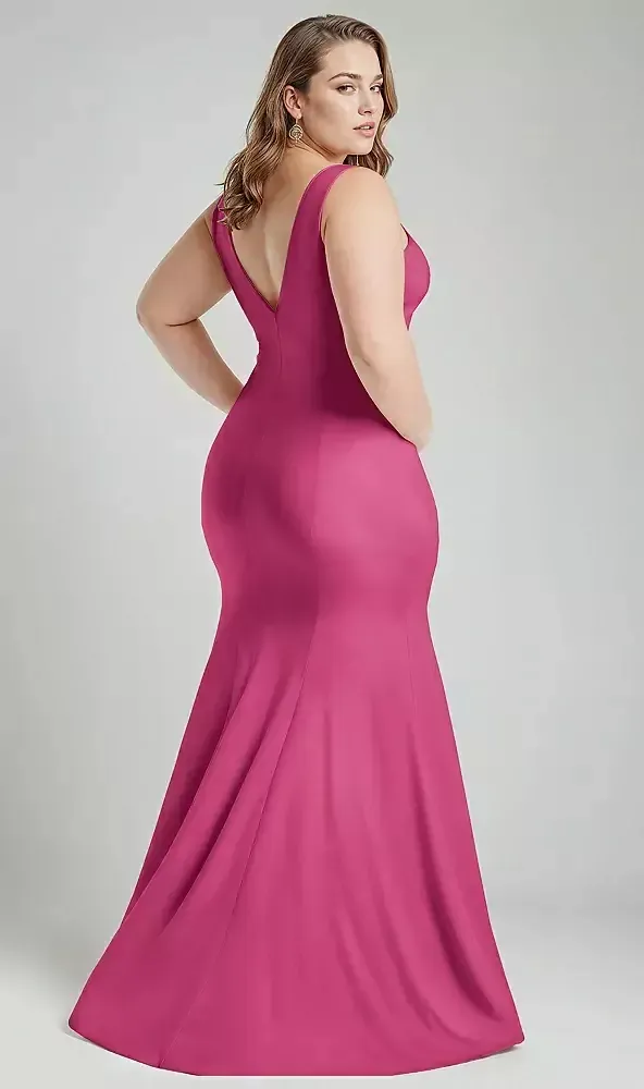 Shirred Shoulder Stretch Satin Mermaid Dress with Slight Train