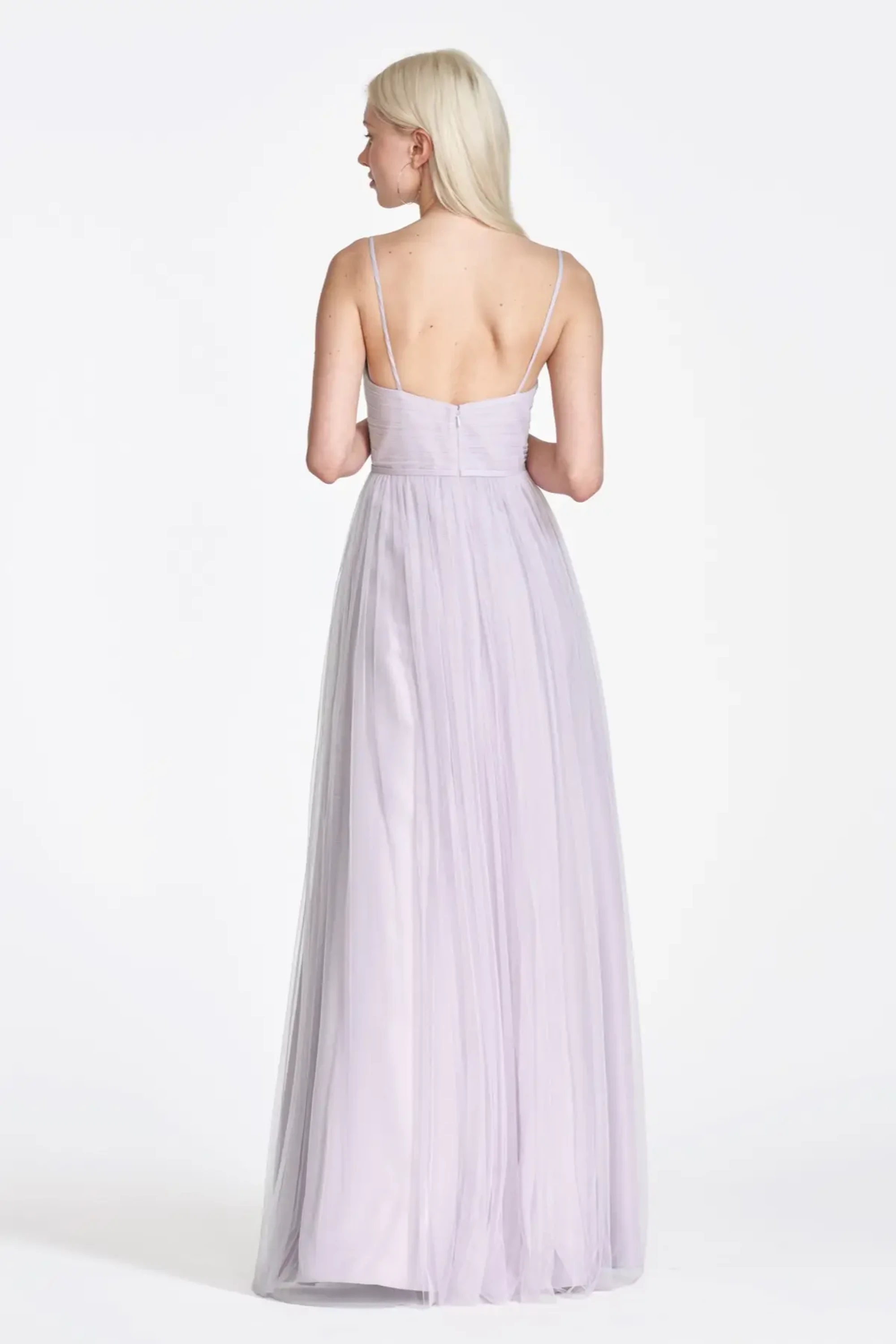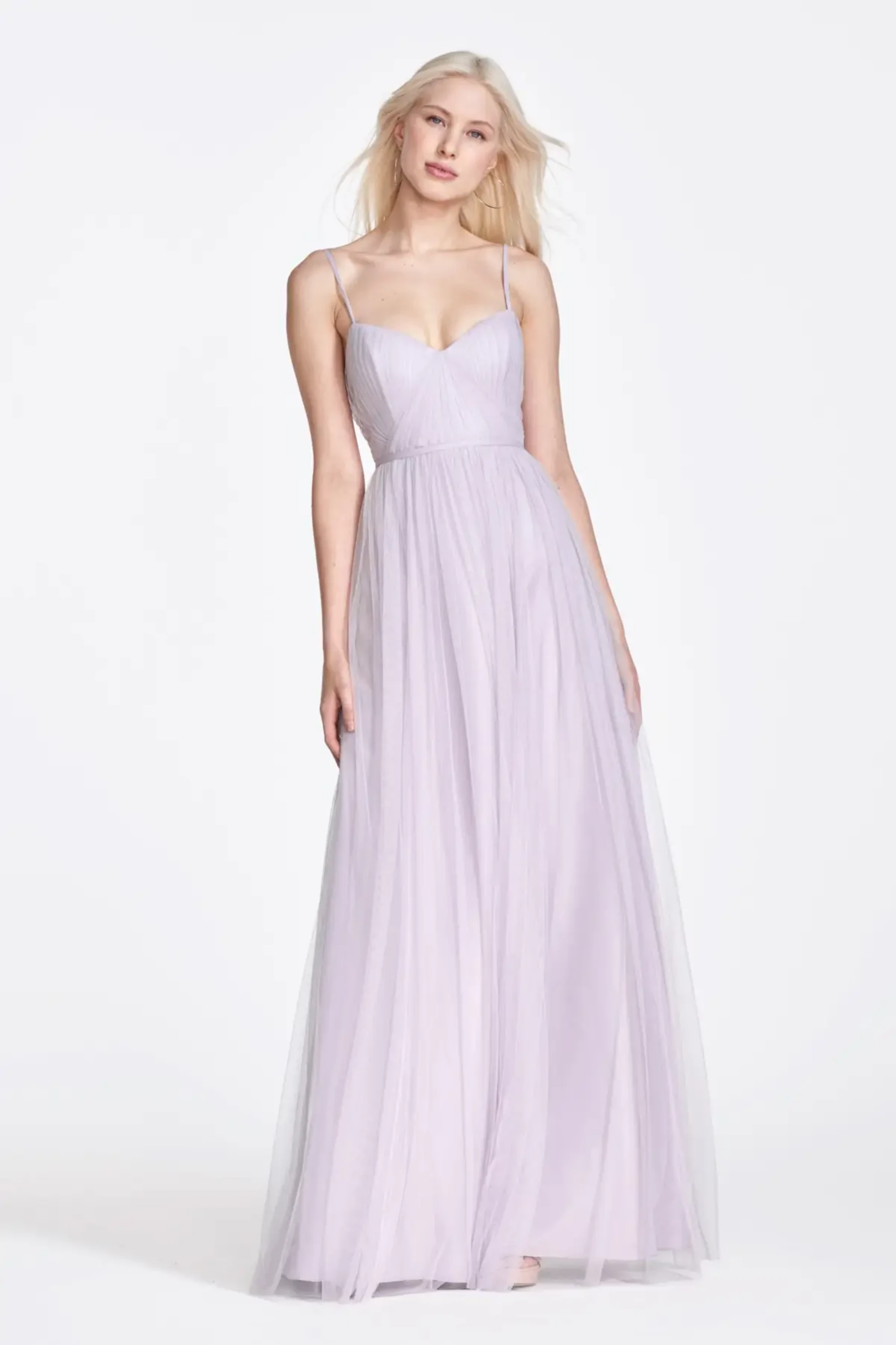 Everest style 941 from Wtoo is an enchanting shirred bobbinet bridesmaid gown that has a sweetheart bodice and spaghetti straps.