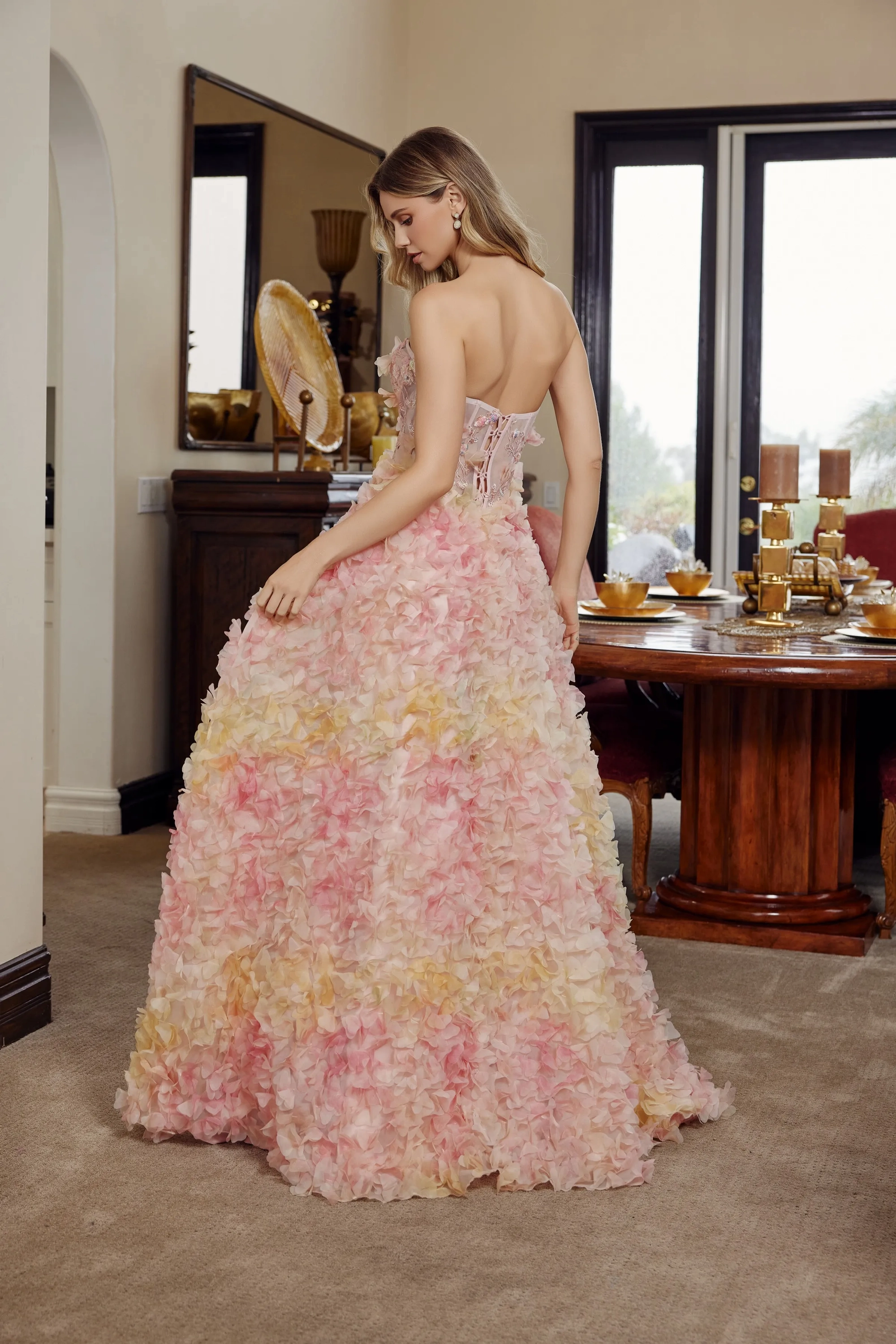 Glamorous Strapless Ballgown with Textured Embellishments