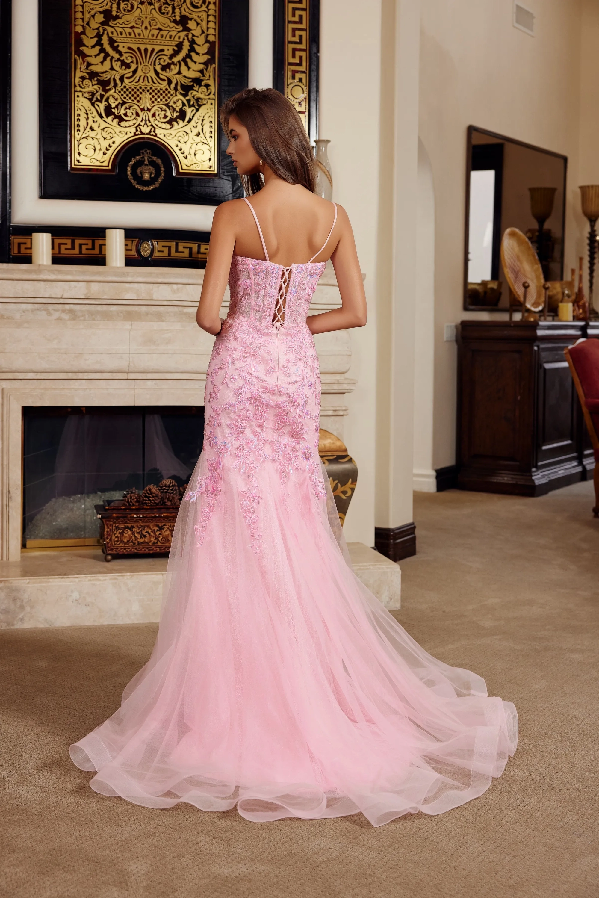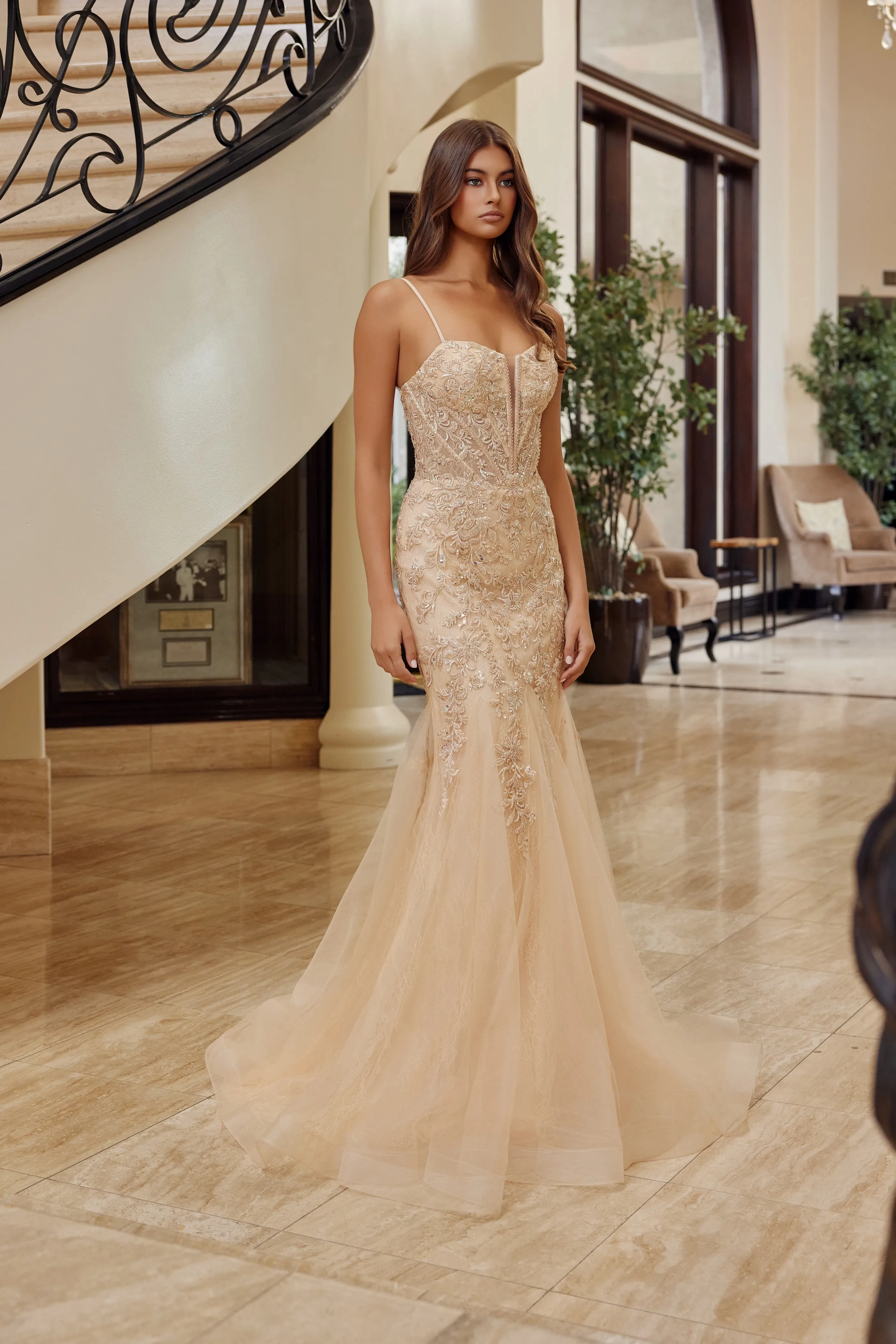 Special Features:Beading, Embellishments, Illusion detail, Spaghetti Straps, Train, Tulle overlay
