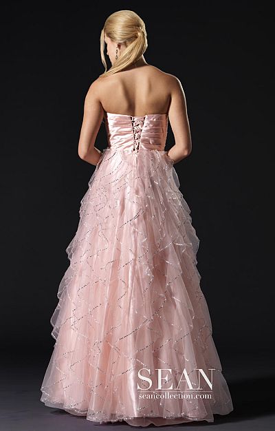 SEAN COUTURE SEQUIN BEADED RUFFLE BALL GOWN PROM DRESS 70579