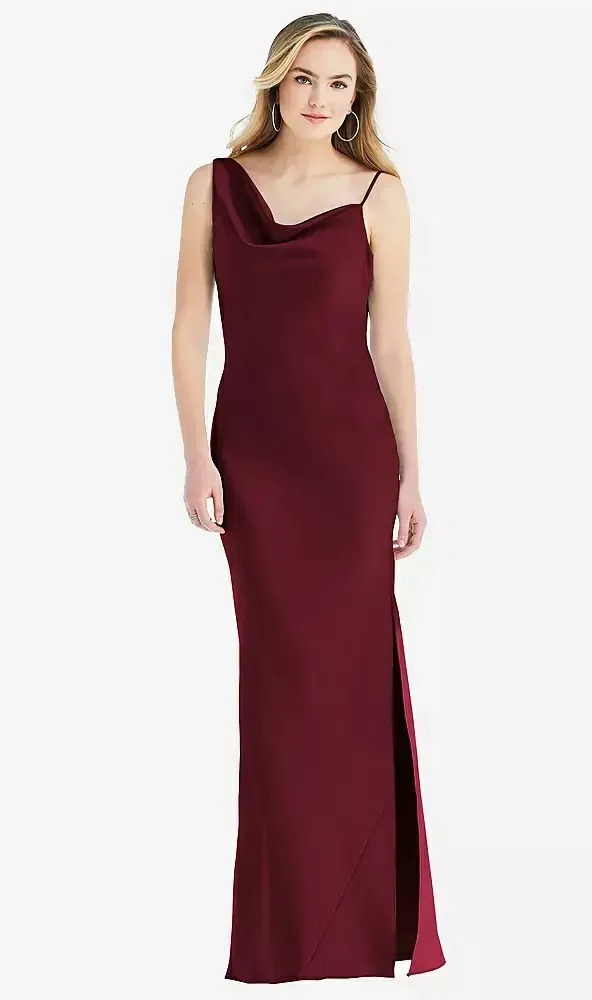 Asymmetrical One-Shoulder Cowl Maxi Slip Dress