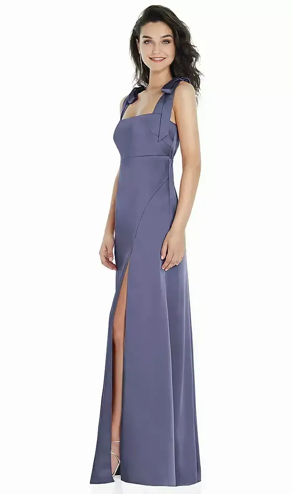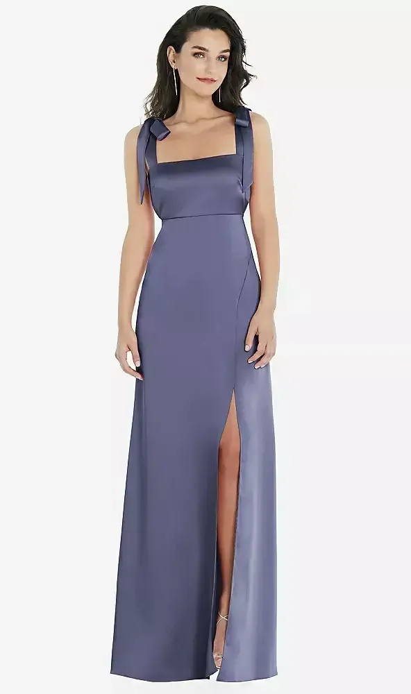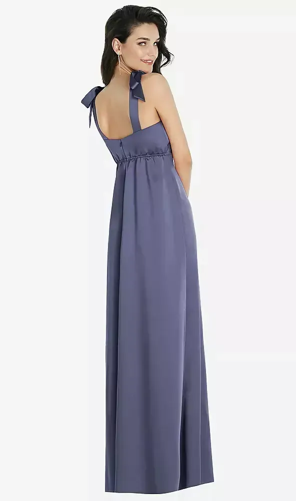 Flat Tie-Shoulder Empire Waist Maxi Dress with Front Slit