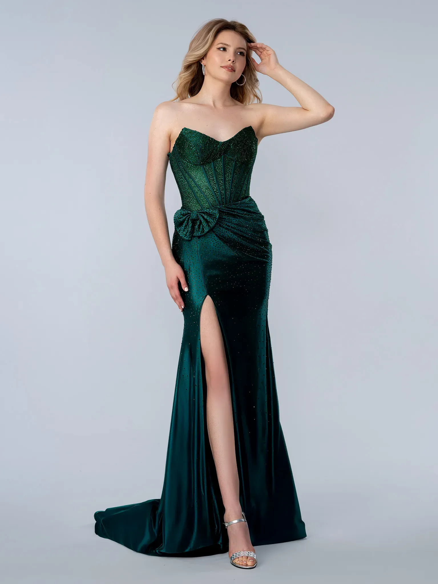 Strapless Mermaid Gown with Sequin Bodice and Slit