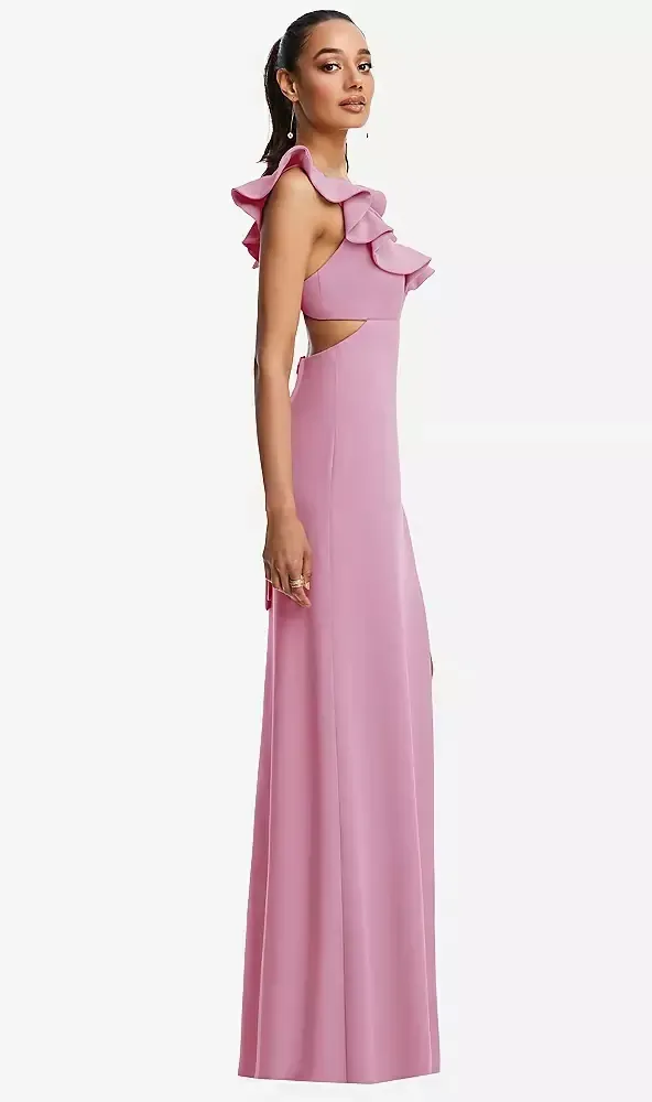 Ruffled Neckline Cut-Out Gown - Elegant Special Occasion Dress