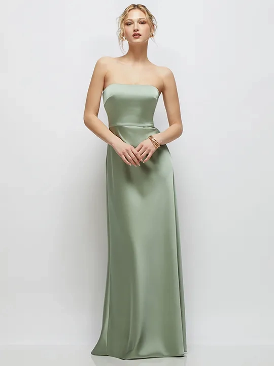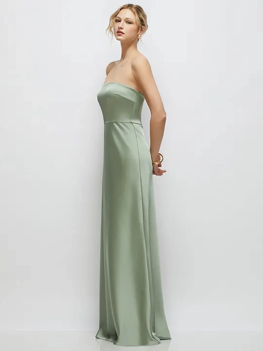 With its sleek silhouette and silky-smooth allure, this strapless Neu Stretch Charmeuse maxi dress is pure understated glam. A clean, straight neckline paired with a fitted bodice defines your shape beautifully, flowing effortlessly into a graceful A-line skirt. Optional spaghetti straps give you styling versatility?keep it chicly strapless or sewn in for a delicate alternative. Whether you're headed to a wedding, an event, or a night out, this satin maxi dress nails the balance between subtle drama and modern romance.