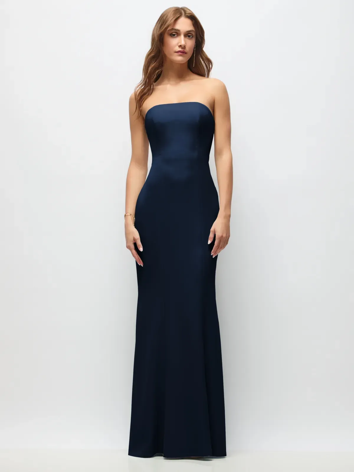 Elegant Strapless Crepe Fit-and-Flare Gown