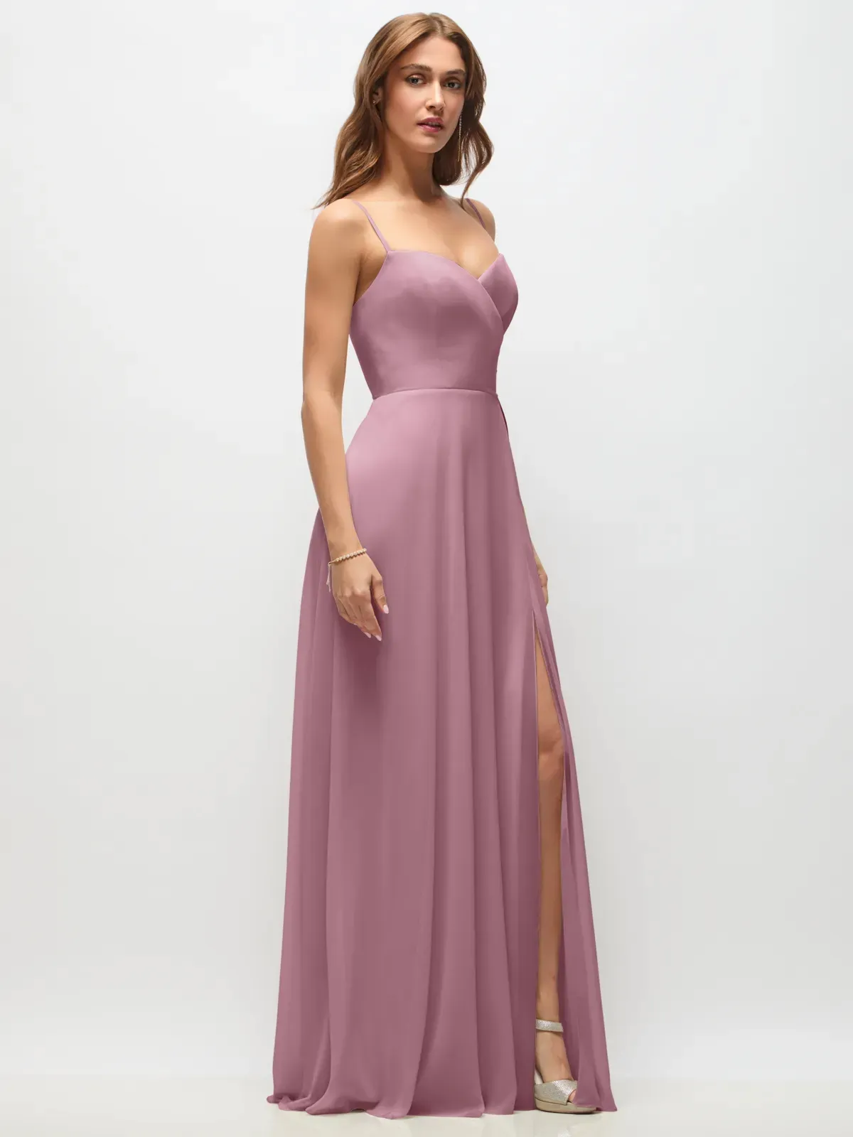 Lux Chiffon Wrap Bodice Slit Gown